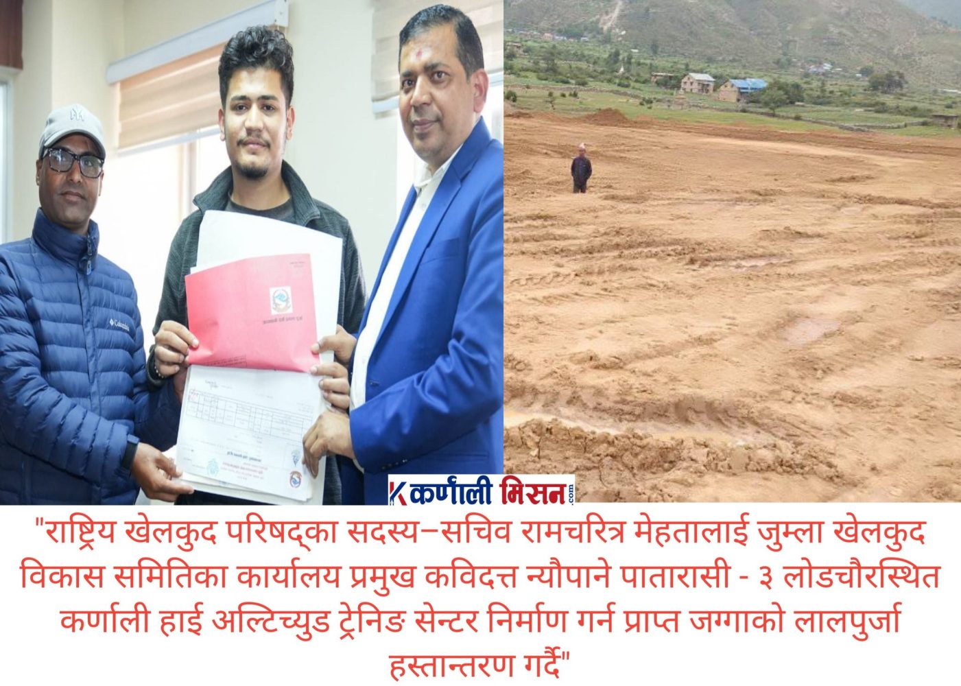 जुम्ला – समुद्री सतहदेखि दुई हजार ८५० मिटर उचाइमा रहेका पातारासी गाउँपालिका – ३ लोडचौरस्थित कर्णाली हाई अल्टिच्युड ट्रेनिङ सेन्टरका लागि जग्गा प्राप्त भएको छ