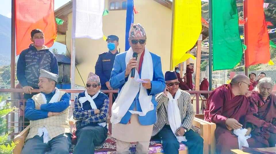 बौद्ध गुरु खेम्पो गिर्मे छिल्टुङले शान्ति पुजा गरेका थिए । भने, पुर्व बनराज्यमन्त्री तथा नेपाली काँग्रेसका नेता भक्तबहादुर रोकाया,जिल्ला समन्वय समितिका उपप्रमुख कार्मा बुढा र नेकपा एमालेका जिल्ला अध्यक्ष शान्तिलाल महत सहभागि थिए ।