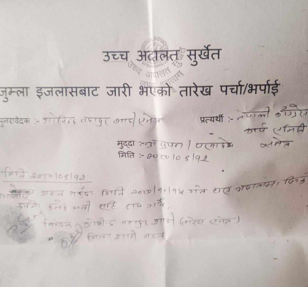 निर्वाचन समिति सभापति कर्ण बहादुर शाहीले गठन गरेपछि कार्यबाहक सभापतिलाई जिम्मेवारी दिइएको थियो । तर कार्याबाहक सभापतिलाई समेत थाहा नदिएर निर्वाचन प्रक्रिया अगाडि बढेको देखिन्छ,’ रिट दायर कर्ता गोविन्द बहादुर शाहीले भने । रिट दायर गर्नेमा महाधिवेशन प्रतिनिधि गिता शाही र भक्तबहादुर शाहीको पनि सहमति रहेको छ ।