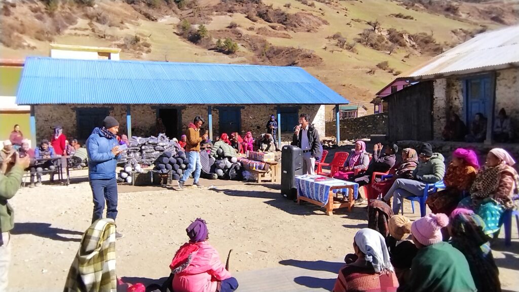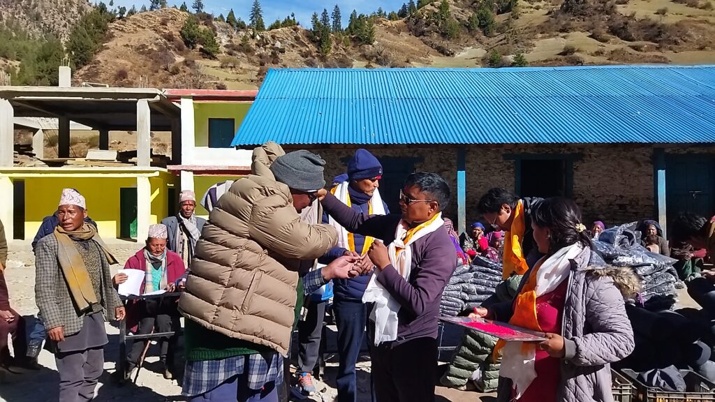 बाबालाई नाना (जकेट) आमालाई नाना सहित खाना (जकेट र हर्लिक्स) वितरण गरेका छौ । उनले भने,“जकेटले चिसोबाट जोगाउला । हर्लिक्स रोग संग जुद्ने क्षामता बढाउँला भन्ने मनसायले बाबालाई नाना र आमालाई नाना सहित खाना वितरण गरेका हौ । कार्यक्रम जनमुखीनै मानिन्छ ।”