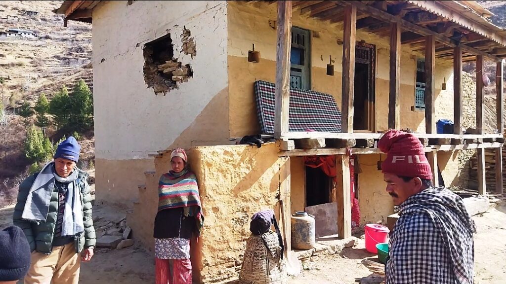 तर दुई वर्ष अघिमात्रै ऋण जोहो गरि निर्माण गरेको घर क्षतविक्षत भयो । केही कोठाका पर्खाल भत्किए भने,बाँकि सबै कोठा चर्किएर बस्नै नमिल्ने भएपछि प्रेम बहादुर शाहीको १२ जना परिवार कठ्याग्रिदो चिसोमा त्रिपालमुनि र गोठमा बस्न बाध्य भएका हुन् ।