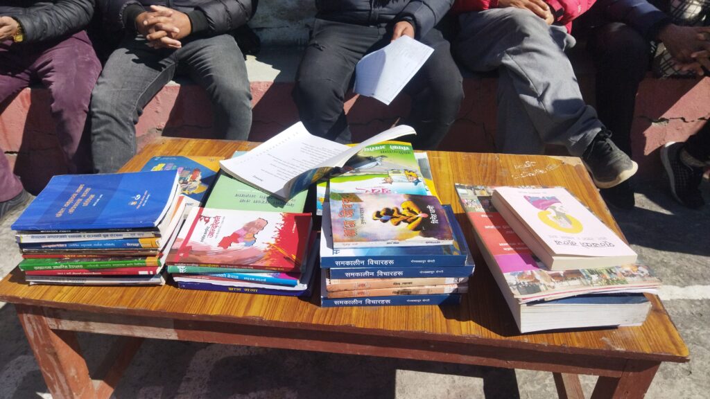 समाज,साहित्य,देशकाे राजनीतिक परिवेश,उधमशीलता,सकरात्मक साेचकाे विकास हुने खालका किताबहरु संकलित गरी हस्तान्तरण गरिएकाे छ ।