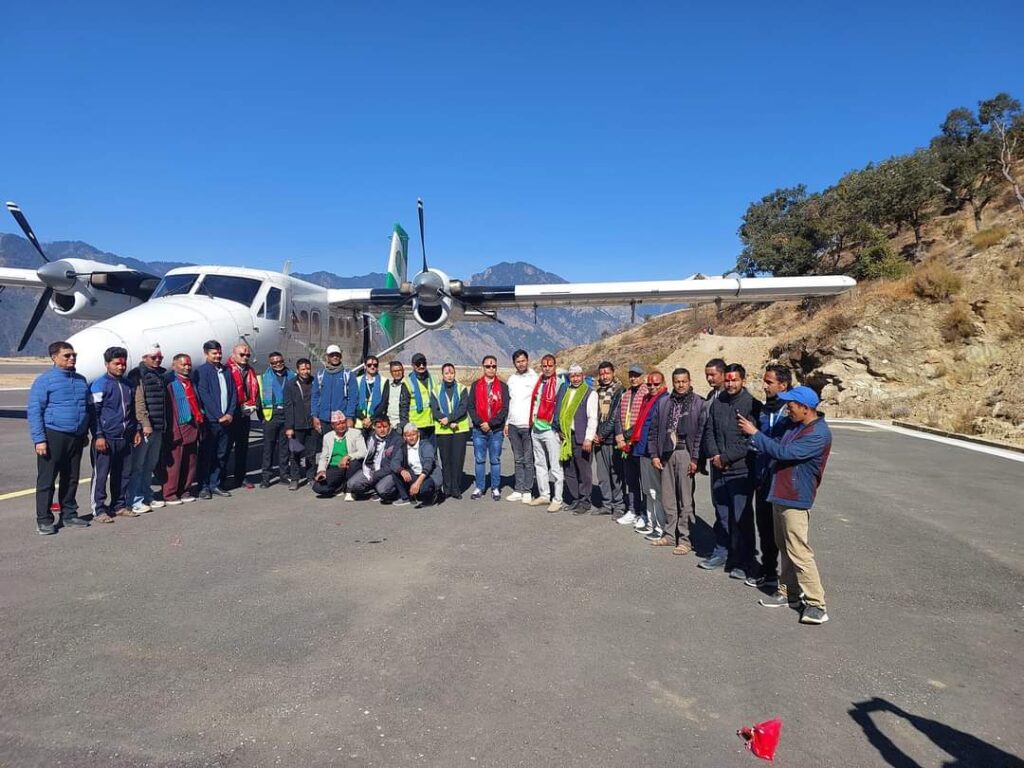 उद्घघाटन पुर्व सबै पक्षकाे अध्यायन स्वरुप तारा एयरकाे 9N-AKL विमानले परिक्षण उडान गरेकाे नरहरीनाथ गाउँपालिकाका प्रवक्ता प्रदिप बाेहाेराले बताए । उनले भने,’परिक्षण उडान सफल भएकाे छ । साेमबार १० बजे प्रधानमन्त्रीद्दारा विमानस्थलकाे उद्घघाटन हुने भएकाेले प