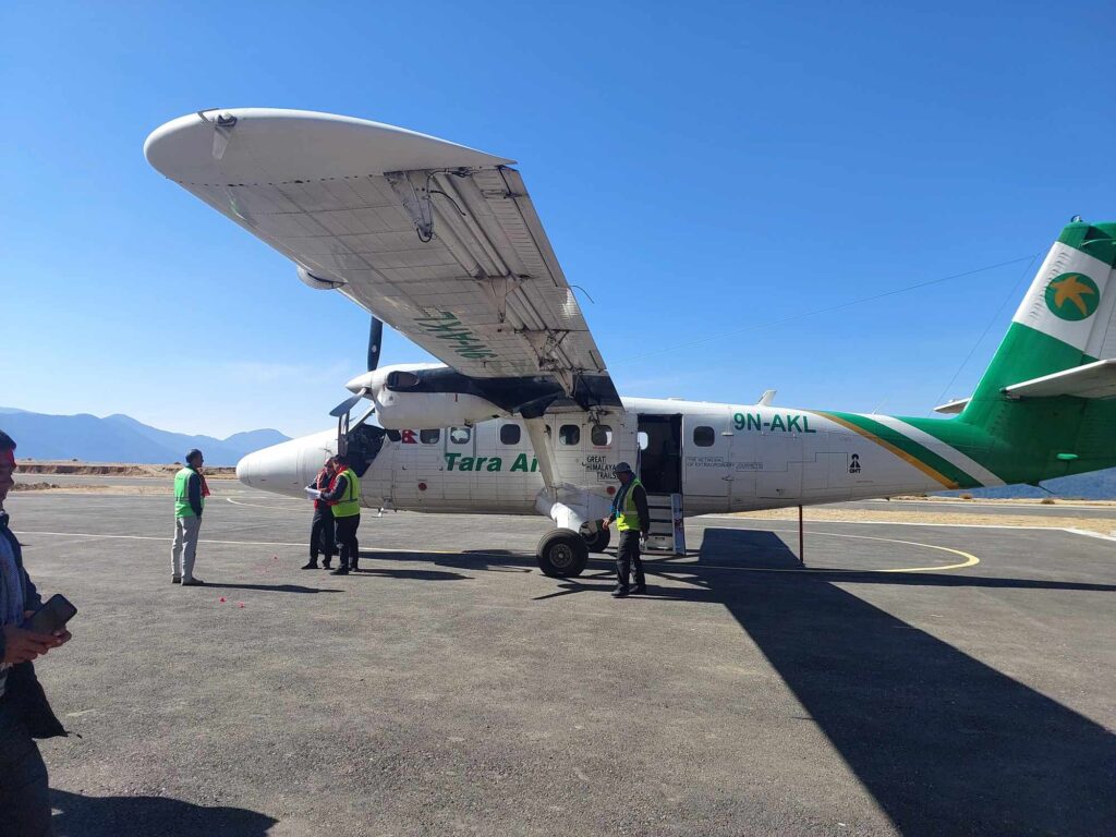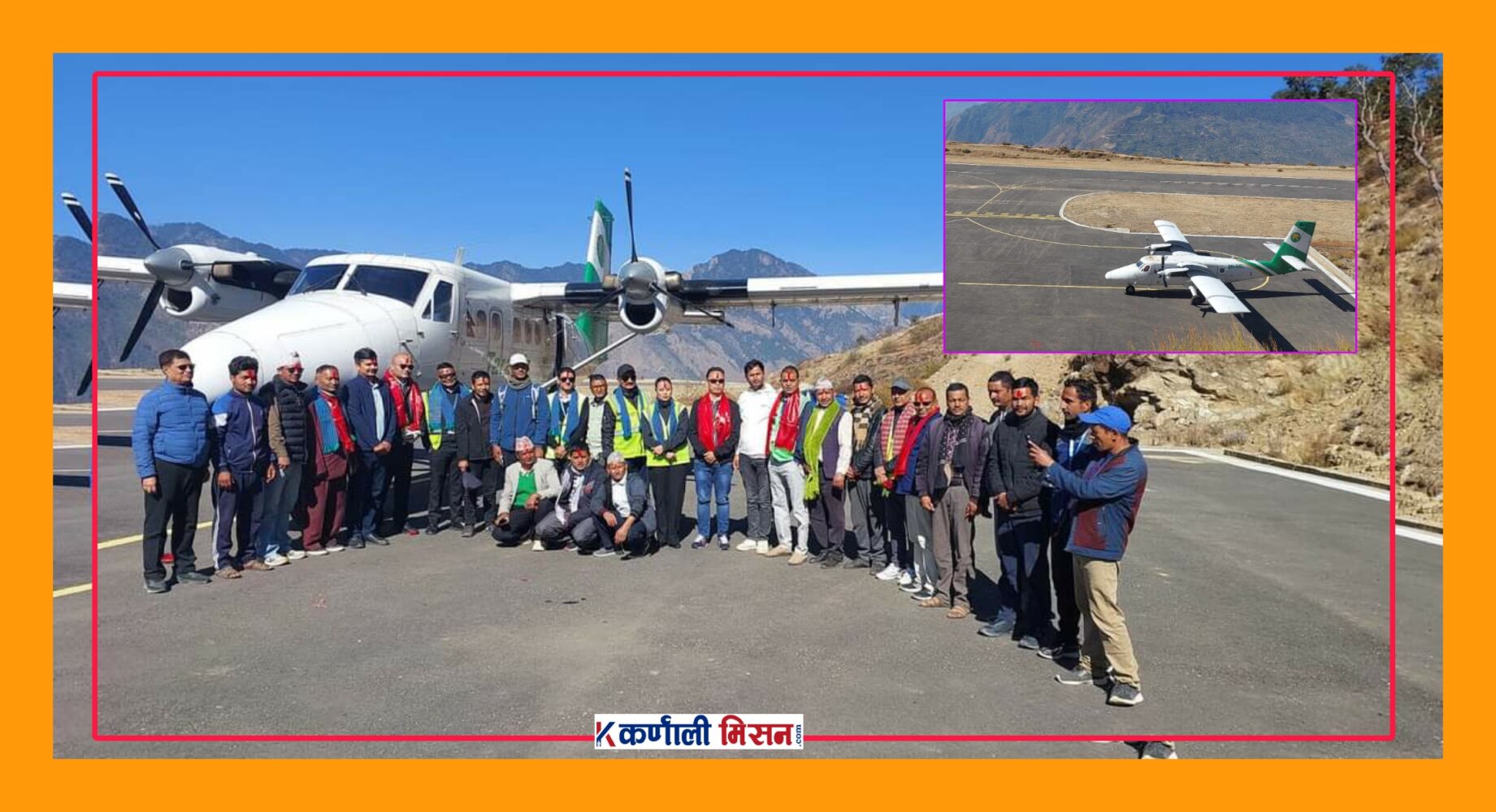 जुम्ला ।कालिकाेट नरहरीनाथ गाउँपालिका-१ काेटबाडा स्थित सुनथराली विमानस्थलमा तारा एयरकाे विमानले परिक्षण उडान गरेकाे छ ।