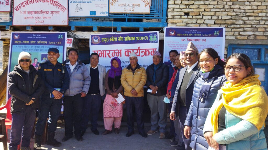 जुम्ला । देशभर आजदेखी सुरु भएको दादुरा–रुबेलाको विरुद्दको खोप अभियान जुम्लामा पनि शुभारम्भ भएको छ । चन्दननाथ नगरपालिका वडा नं.४ को शहरी स्वास्थ्य केन्द्र तथा खोप केन्द्रबाट दादुरा–रुबेला विरुद्दको खोप अभियान शुभारम्भ भएको हो ।