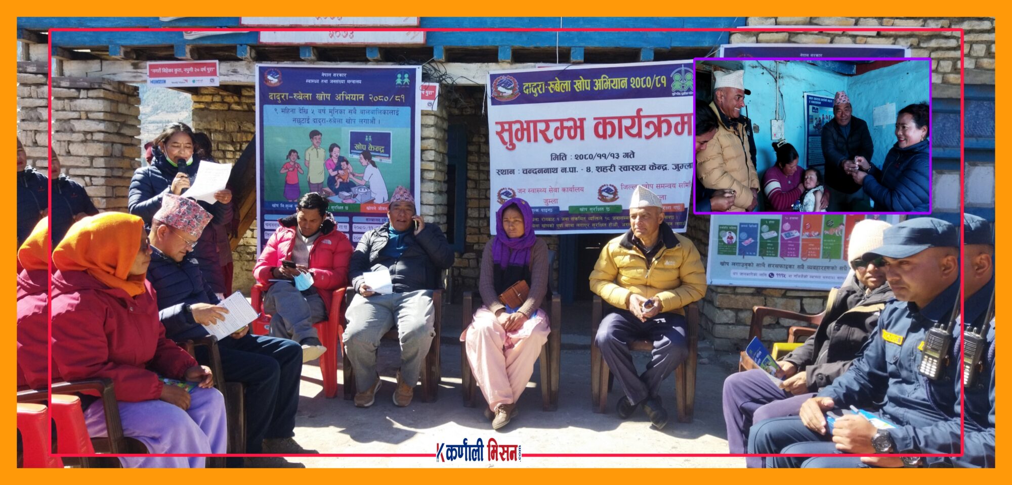 खोप अभियानको उद्घाटन कार्यबाहक समन्वय प्रमुख लग्नमाया भण्डारी,चन्दननाथ नगरपालिकाका मेयर राजुसिंह कठायत,प्रमुख जिल्ला अधिकारी जयकुमार घिमिरेले गरेका छन् । .