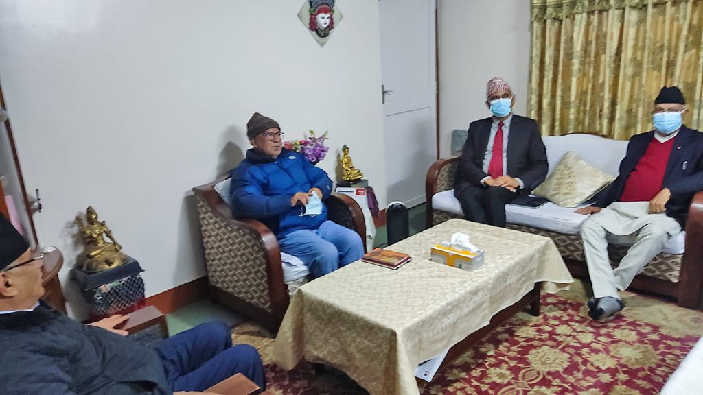 माधव नेपालको घरमा पुगे प्रचण्ड र ओली