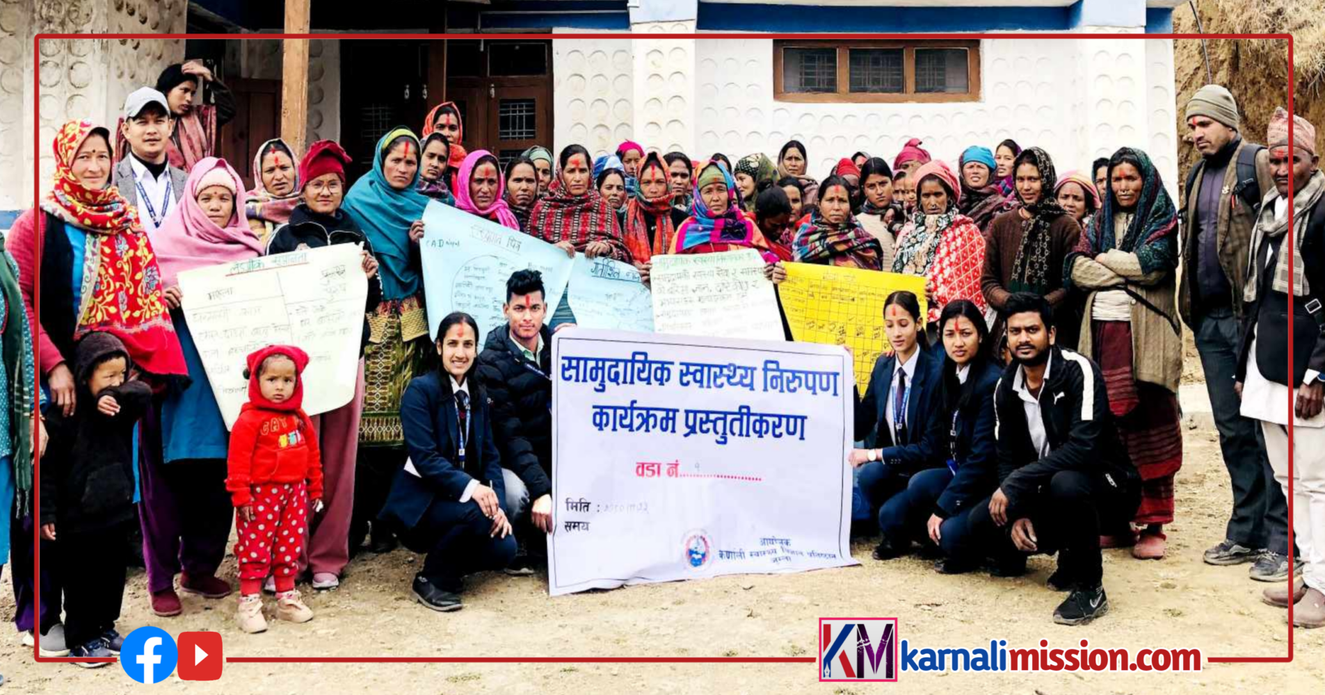 जुम्ला । जुम्लाको हिमा गाउँपालिका भित्र रहेका सबै वडामा समुदायिक स्वास्थ्य निरूपण सम्बन्धी कार्यक्रम सञ्चालन भएको छ । कर्णाली स्वास्थ्य विज्ञान प्रतिष्ठानमा स्नातक तह अन्तर्गत बि.पि.एच. दोस्रो वर्ष र एम.बि.बि.एस. प्रथम वर्षमा अध्ययनरत विद्यार्थीहरुले सञ्चालन गरेका हुन् ।