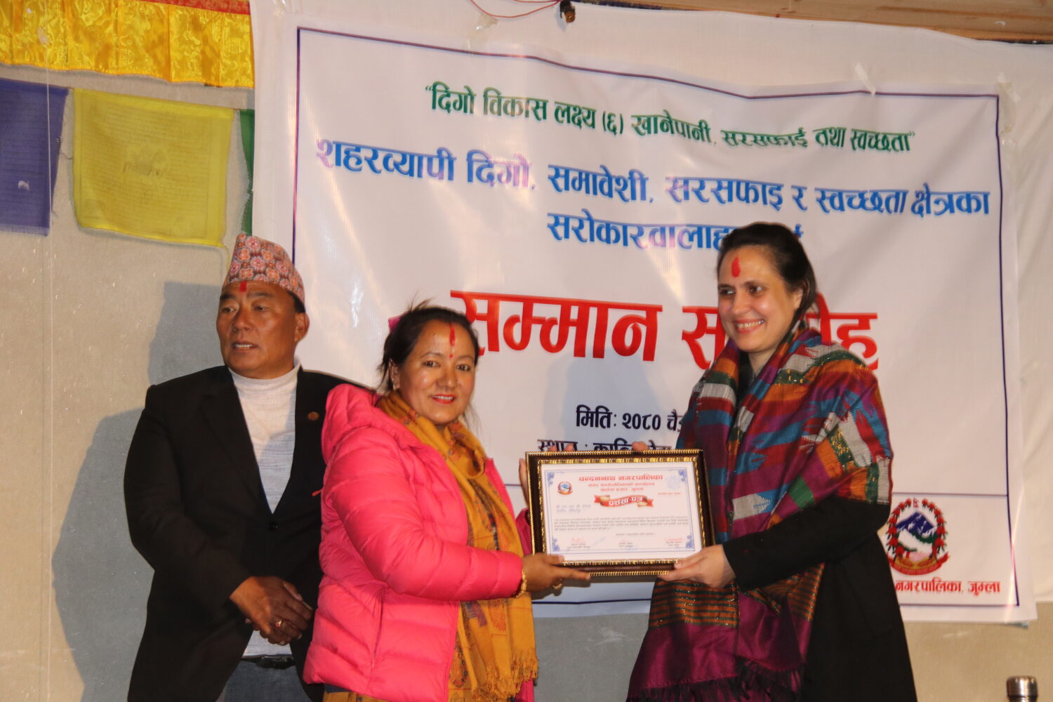 सम्मान समारोह कार्यक्रममा नगर उपप्रमुख रामदेवि खड्काले एसएनभी नेपालले धेरै लामो समयदेखि यस चन्दननाथ नगरपालिकामा काम गरेको छ । उनले भनिन् जसका कारण नगरबासीलाई धेरै सहज भएको छ । अव यस नगरपालिकामा एनएनभी नेपालको सरसफाई तथा स्वच्छता कार्यक्रम समाप्त हुदैछ । एसएनभी नेपालले गर्दै आएका काम अब हाम्रो जिम्मेवारीमा आएको छ । अब हामी सवै जिम्मेवार तत् निकाय, शाखाले काम गर्नु पर्दछ । फोहोर व्यवस्थापन तथा स्वास्थ्य सरसफाई क्षेत्रमा धेरै सिकाई भएको छ ।