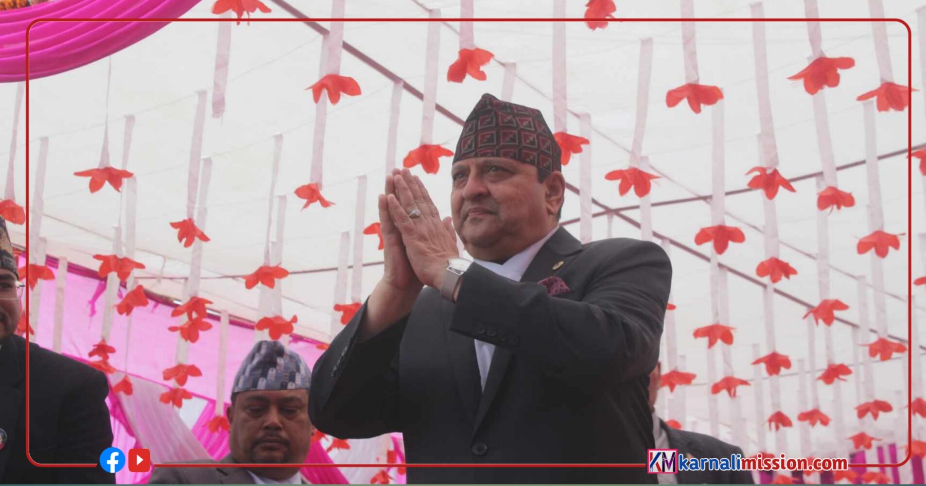 जुम्लाकाे नागरिक अभिनन्दन कार्यक्रममा सहभागी हुन आएका पूर्वराजा शाहले संबाेधन गर्दै साँच्चै नै जुम्ला हामीहरूको राष्ट्रियता, हाम्रो भाषा, हाम्रो धर्म संस्कृति र हाम्रो सुन्दर सुसम्पन्न प्रकृतिको दिव्य धरोहर भएकाे बताएका हुन् ।