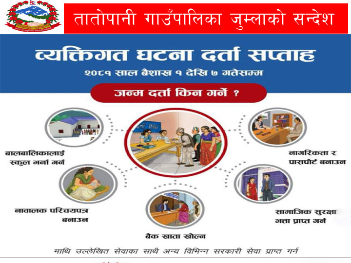 घटना दर्ता सम्बन्धि ताताेपानी गाउँपालिकाकाे सन्देश