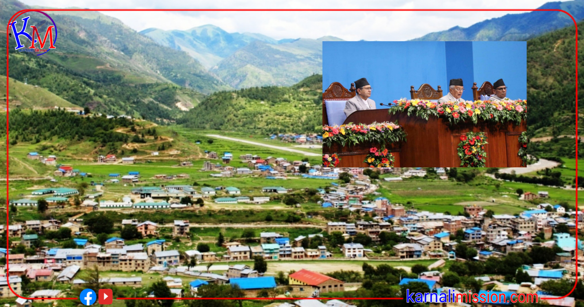 जुम्ला । संघिय सरकारको नीति तथा कार्यक्रममा कर्णालीका महत्वपूर्ण योजनालाई प्रथामिकता दिइएको छ । कर्णालीको कृषि,पर्यटन,खानेपानी,सडक पूर्वाधार र सिँचाई लगायतका क्षेत्रको विकासका लागि महत्वपूण योजनाहरुलाई प्रथामकिता दिइएको हो ।