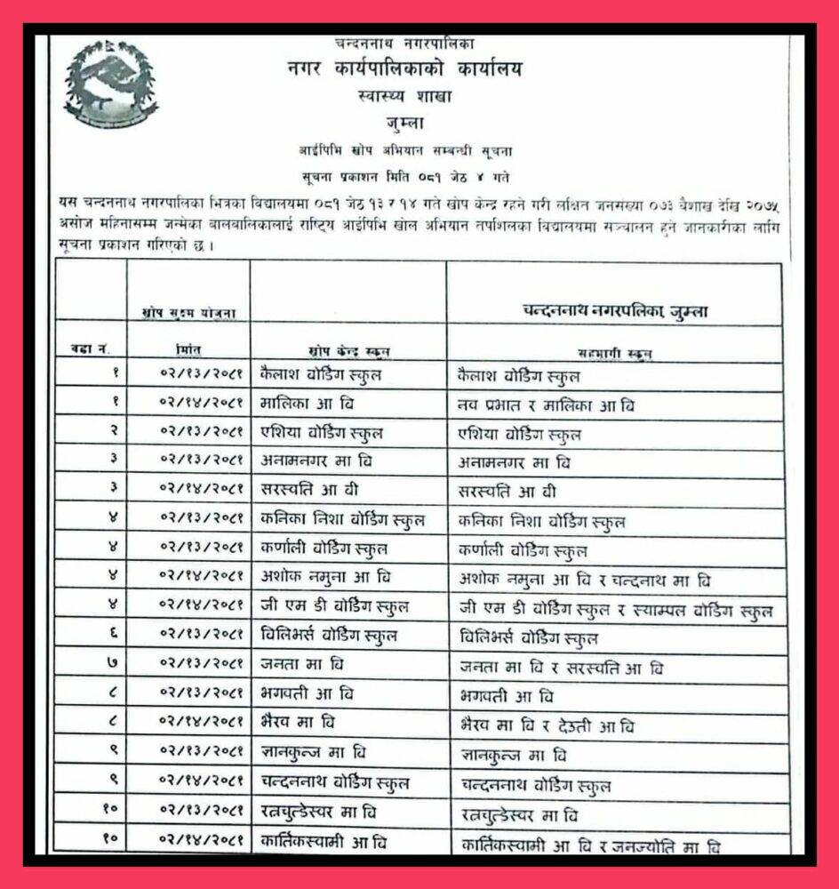 आईपीभी खाेप संचालन बारे चन्दननाथ नगरपालिकाकाे सूचना