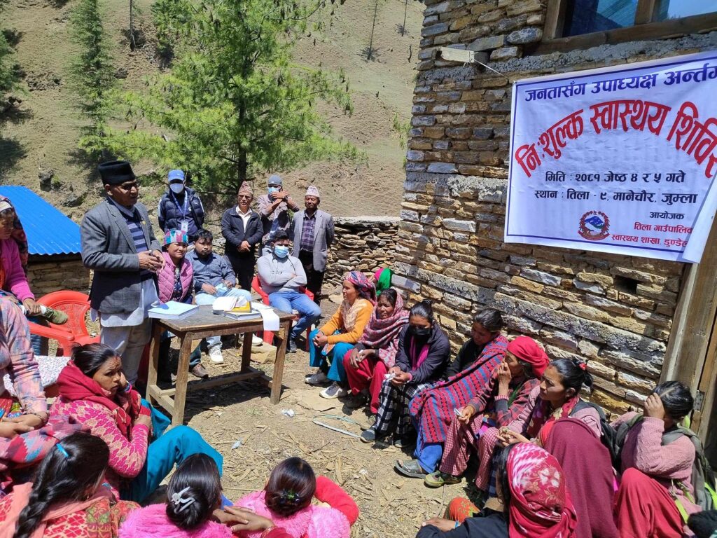 जुम्ला – तिला गाउँपालिका – ९ मानेचौरस्थित दुई दिने निशुल्क स्वास्थ्य शिविरमा ३०४ जनाको स्वास्थ्य परीक्षण गरिएको छ । तत्कालिन घोडेमहादेव र मालिकाठाटा गाविस (६, ७, ८ र ९ वडा) जुम्लाकै दुर्गम क्षेत्र हो । जुन क्षेत्र अहिलेसम्म सडक सञ्जालमा जोडिएको छैन । त्यो ठाउँमा हरेक सेवासुविधाको असुविधा रहेको छ । यस्तै पटक पटक गरिने शिविरमार्फत त्यहाँका नागरिकले सेवा लिने गरेका छन् ।