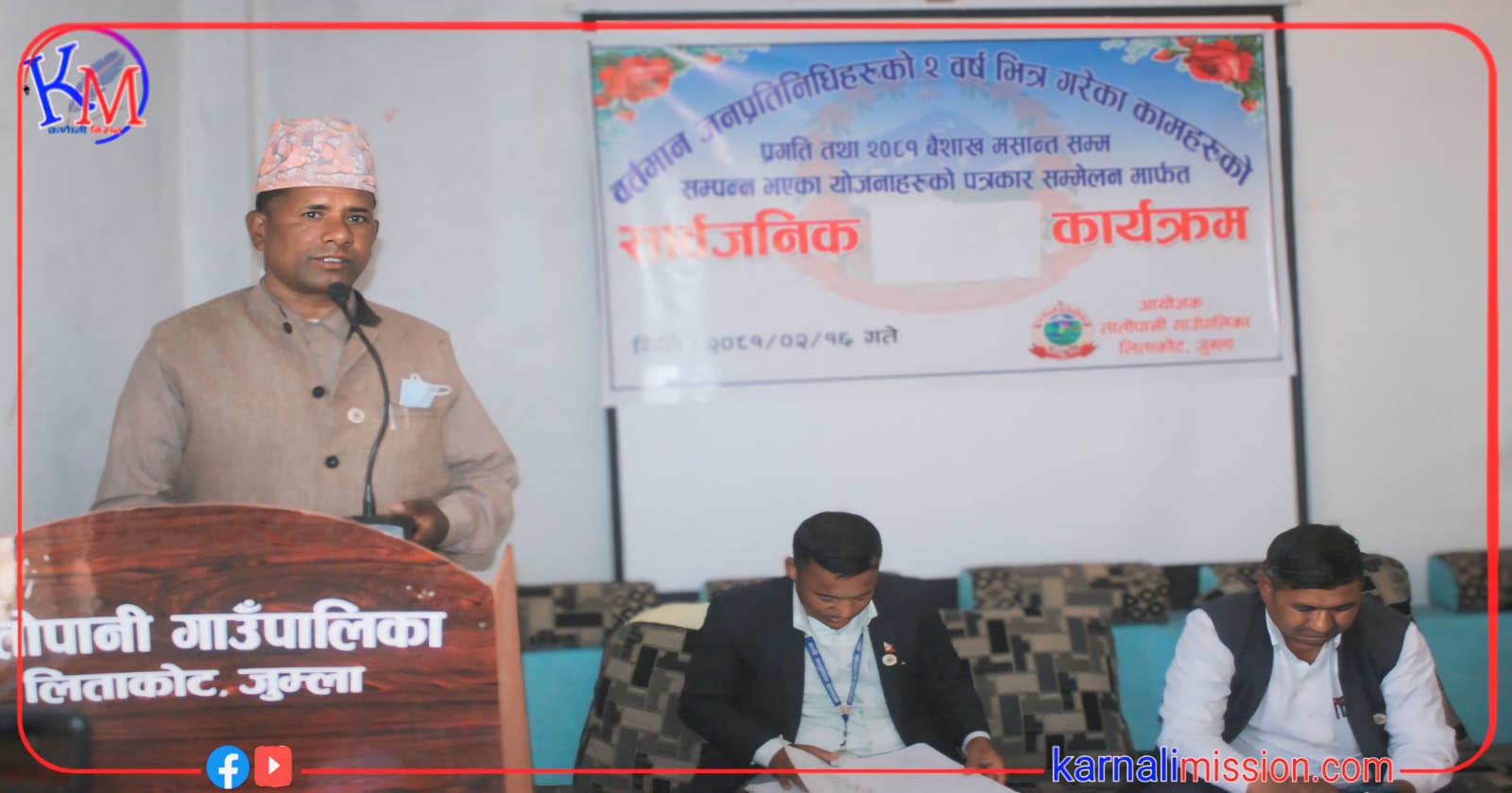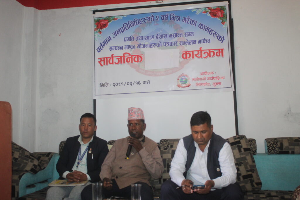जुम्ला । तातोपानी गाउँपालिकाले आफ्नो दुई वर्षे प्रगती विवरण सार्वजानिक गरेको छ । २०७९ मा निर्वाचित भएका गाउँपालिका अध्यक्ष नन्द प्रसाद चौलागाईको नेतृत्वले दुई वर्षमा गरेका कामको प्रगती विवरण सार्वजानिक गरिएको हो ।