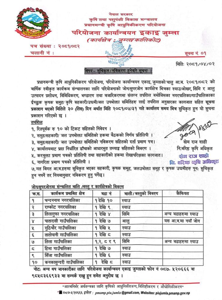 सूचि दर्ता हुनेबारे स्याउ सुपरजोन जुम्लाको सूचना