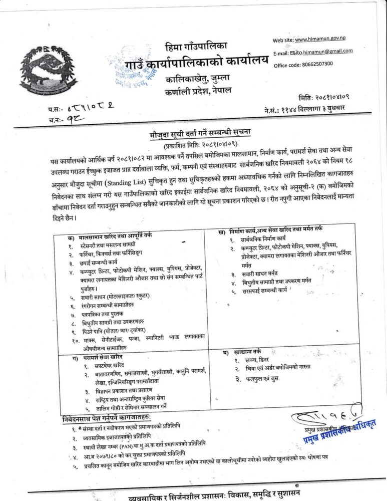 सूचिदर्ता सम्बन्धि हिमा गाउँपालिकाकाे सूचना