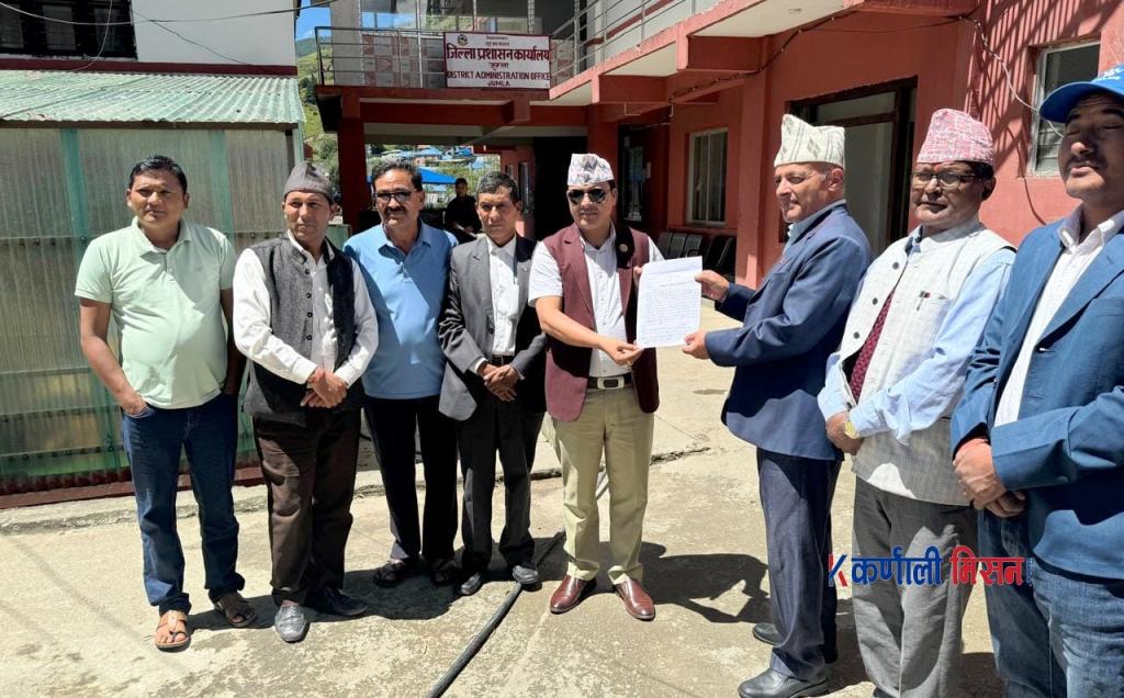 जिल्लामा निर्यात हुने दैनिक उपभोग्य वस्तु पनि रोकिएको छ । यी विभित समस्यालाई मध्यनजर गर्दै गाउँपालिका राष्ट्यि महाँसघका केन्द्रिय उपाध्यक्ष लक्ष्मण बहादुर शाहीको अगुवाइमा शनिवार प्रमुख जिल्ला अधिकारी मार्फत प्रधानमन्त्री छिटो भन्दा छिटो सडक खुलाउन ध्यानर्कषण पत्र बुझाइएको हो ।