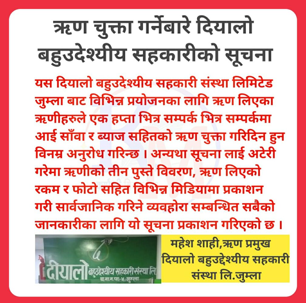 ऋण चुक्ता गर्नेबारे दियालाे सहकारीकाे सूचना