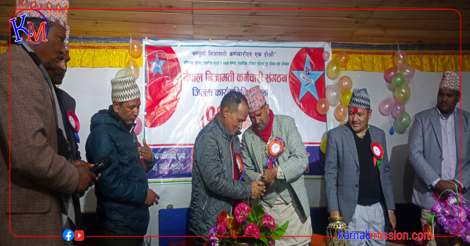 नेपाल निजामती कर्मचारी संगठनको जिल्ला कार्यसमिति जुम्लाको १२ औँ अधिवेशनमा शुभकामना दिदै नेकपा एमाले जुम्लाका अध्यक्ष शान्तिलाल महतले सक्रिय र सक्षम नेतृत्वसहितको जिल्ला कार्यसमिति चयन हुने अपेक्षा गरिएको छ । उनले भने, सधै आफ्नो पेशाप्रतिको इमानदारीता सहित सुशासनमा सचेत रहन कर्मचारीलाई आग्रह गरेका छन् । नेपाल निजामति कर्मचारी संगठनमा आवद्ध कर्मचारीहरुले जनताको सेवामा अब्बलता देखाउनु पर्ने उनको भनाइ छ । नागरिकसँग प्रत्यक्ष जोडिने निजामति कर्मचारीहरुले गुनासो रहित सेवा प्रवाहमा जोड दिन महतले सुझाए ।