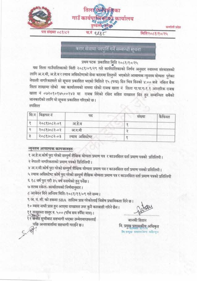 तिला गाउँपालिकाकाे सूचना