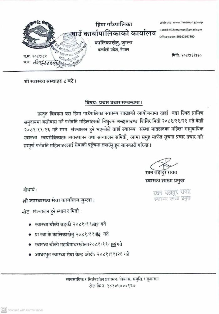 हिमाका दुई स्वास्थ्य संस्थामा स्क्रिनिङ शिविर, १७१ जना महिलाको पाठेघर परीक्षण