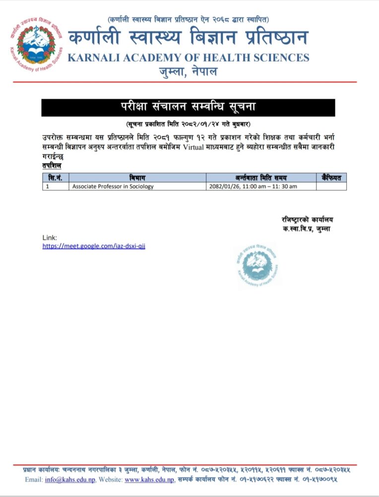 कर्णाली स्वास्थ्य विज्ञान प्रतिष्ठानकाे सूचना