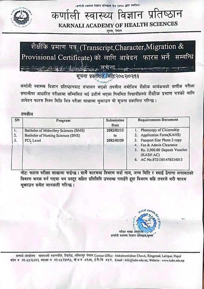 कर्णाली स्वास्थ्य विज्ञान प्रतिष्ठान जुम्लाकाे सूचना
