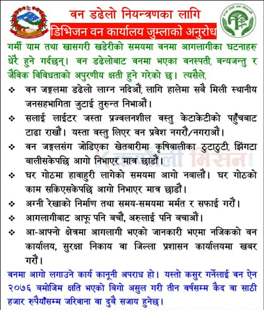 डिभिजन वन कार्यालय जुम्लाकाे जनहितमा जारी सन्देश