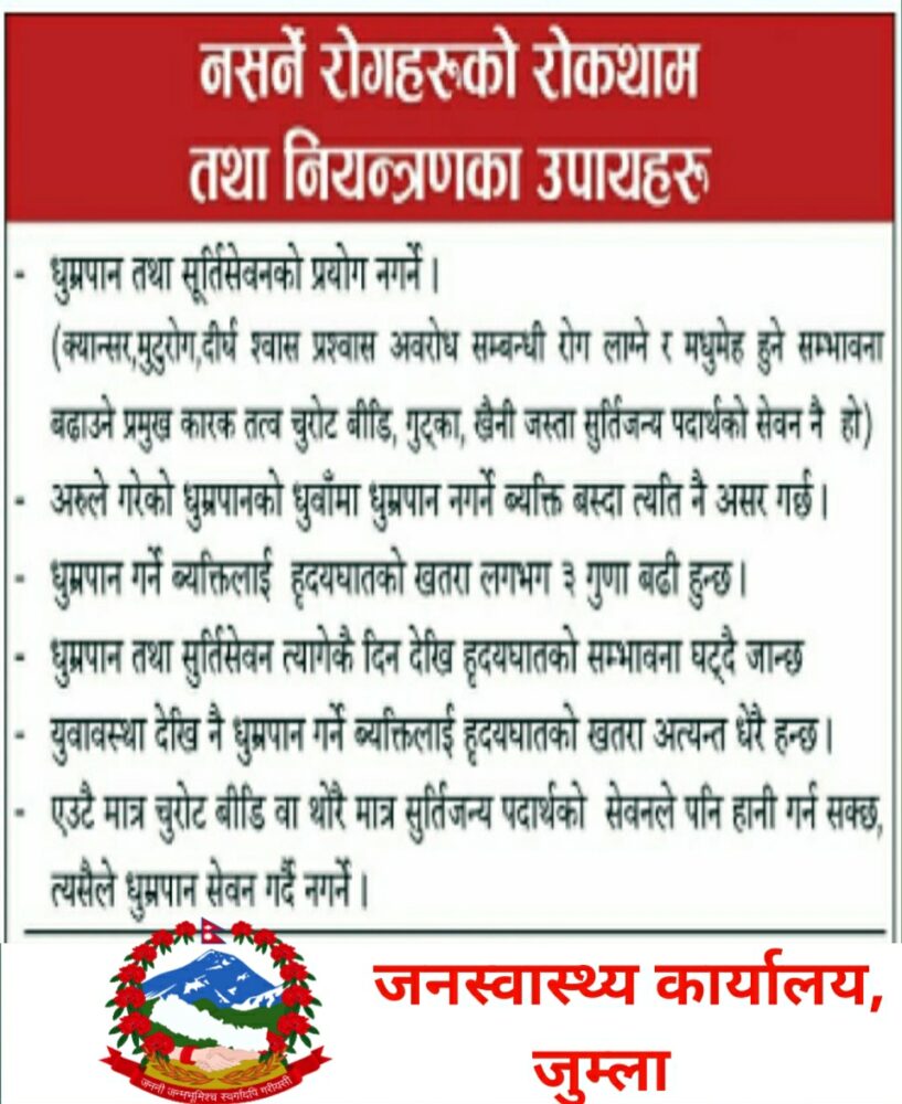 जनस्वास्थ्य कार्यालयकाे जनहितमा जारी सन्देश