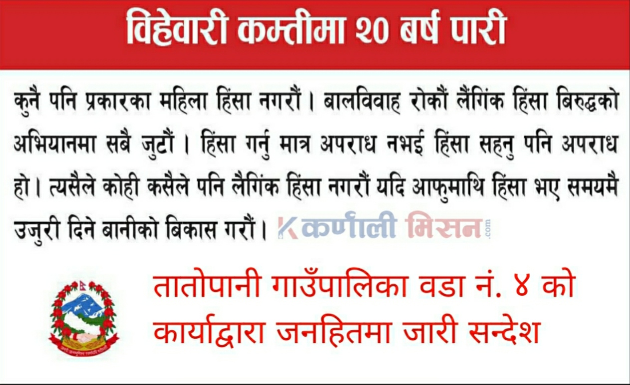 ताताेपानी गाउँपालिका वडा नं.४ काे सन्देश