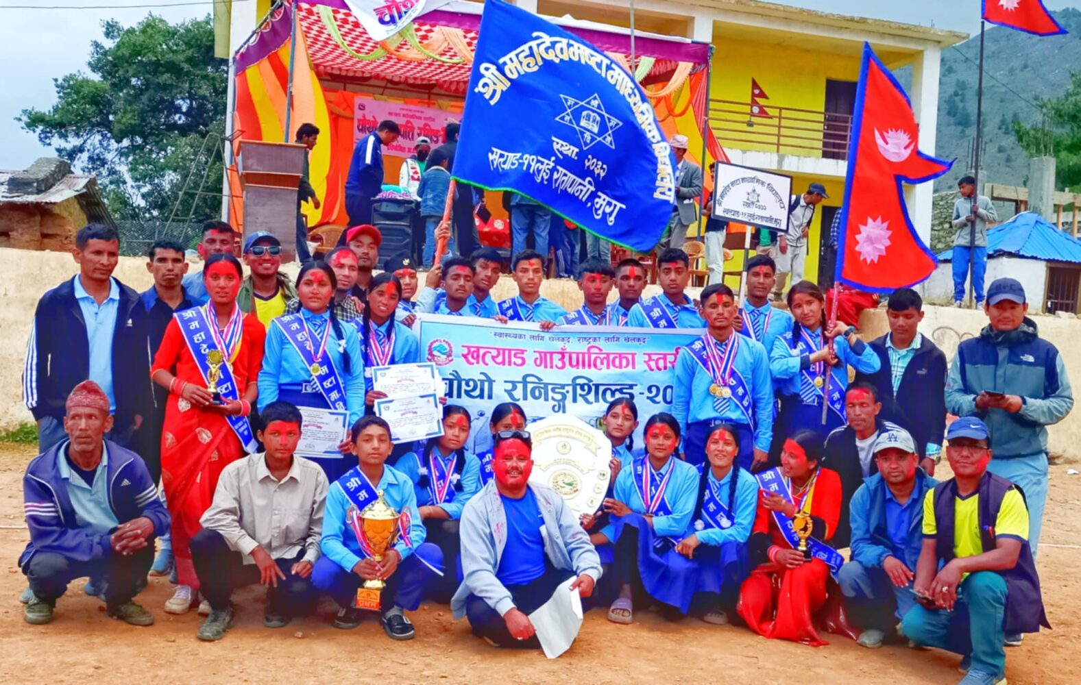 जुम्ला । मुगुको खत्याड गाउँपालिका स्तरीय चौथो राष्ट्रपति रनिङशिल्ड प्रतियोगितामा महादेव मष्टा नमुना माध्यमिक विद्यालय प्रथम भएको छ । गाउँपालिकाभरीबाट सहभागी १२ वटा विद्यालय मध्यबाट उत्कृष्ट खेल प्रर्दशन गर्दै महादेव मष्टा नमुना माध्यमिक विद्यालय प्रथम भएको हो ।