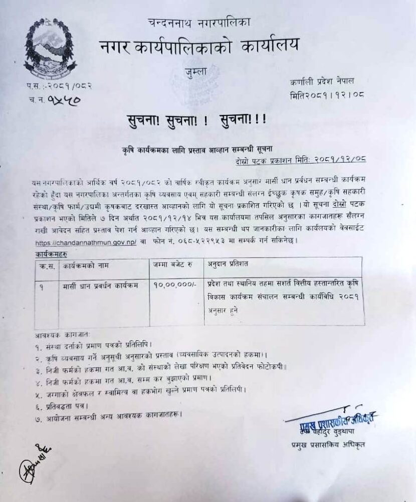 चन्दननाथ नगरपालिकाको सूचना
