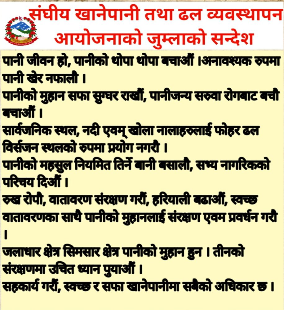 संघिय खानेपानी तथा ढल व्यवस्थापन आयाेजना जुम्लाकाे सन्देश