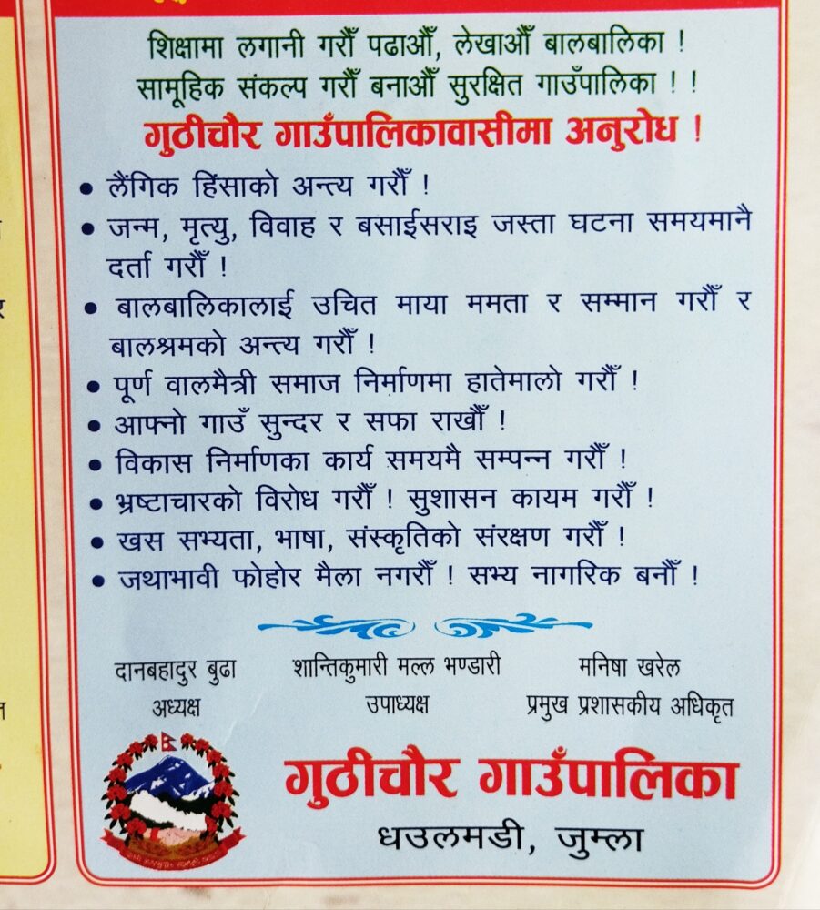 गुठिचाैर गाउँपालिकाकाे सन्देश