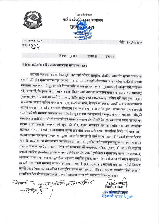 सिंजा गाउँपालिकाको सूचना