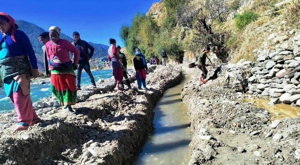 श्रमदान मार्फत मर्मत गरिएको सिँचाई कूलो । तस्बिरः सागर परियार