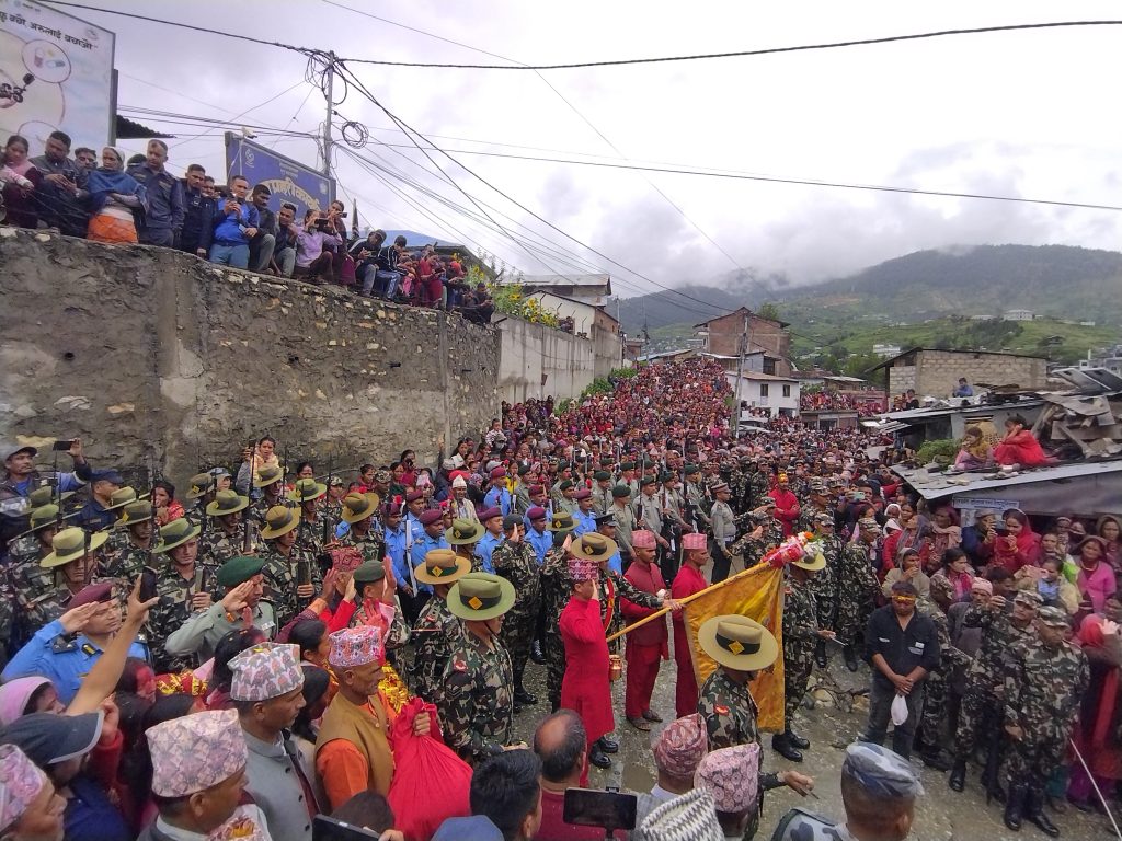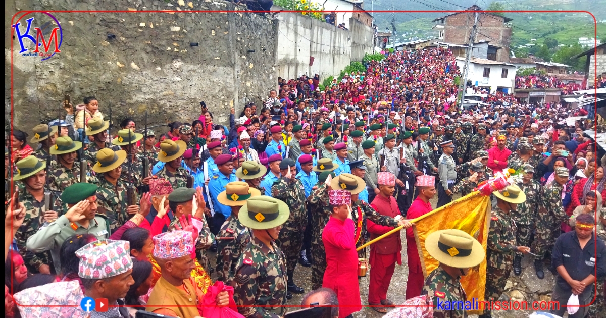 नेपाली सेनाको सलामीसहित टोलीलाई जुम्लाका सयौ भक्तजन, सरकारी तथा गैससका प्रतिनिधिहरूले फूलमाला अबिर सहित बिदाइ गरेका छन् ।