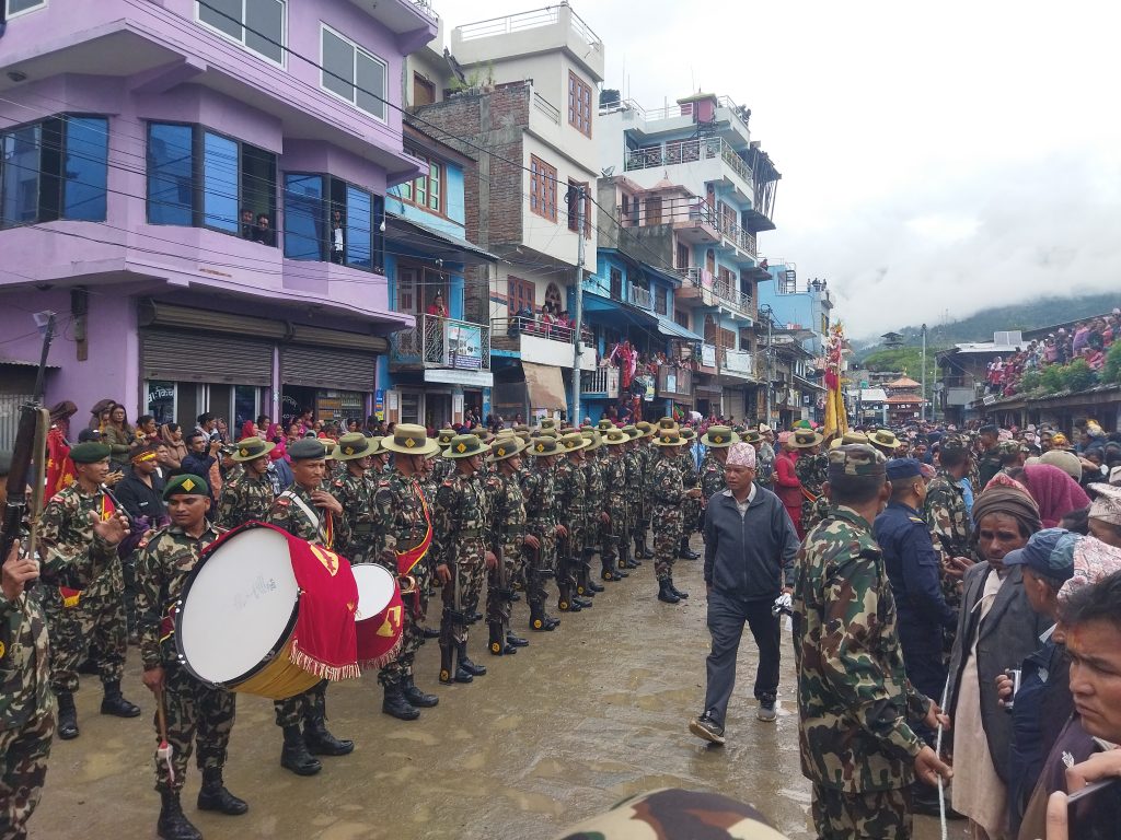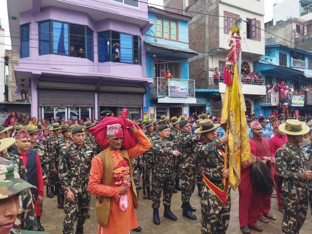 नेपाली सेनाको एक टुकुटीले बटुक भैरवनाथ, बाबा चन्दननाथ र दरबार मालिकाको सलामी अर्पण,पाँच वटा सलामी,ब्यान्डबाजा र बिगुल फुकेर पूजाको डोली सहित बडिमालिका हिँडेको टोलीलाई भव्य बिदाइ गरिएको प्रजिअ शर्माले जानकारी दिए ।
