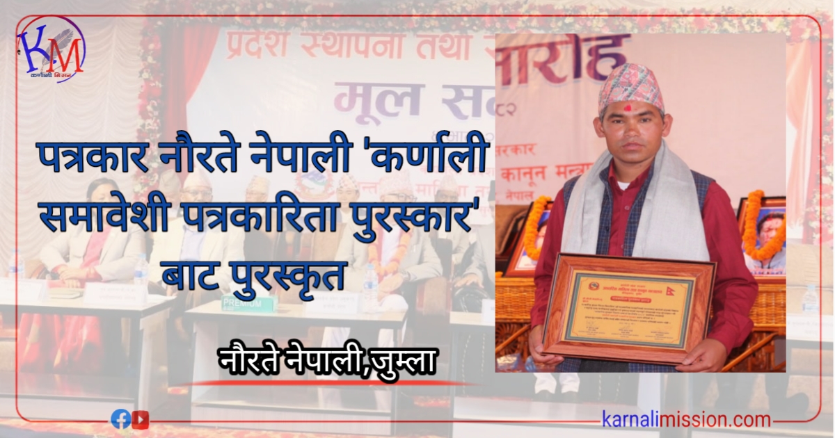 कर्णाली प्रदेश ‘समावेशी पत्रकारिता पुरस्कार’ बाट नाैरते नेपाली पुरस्कृत