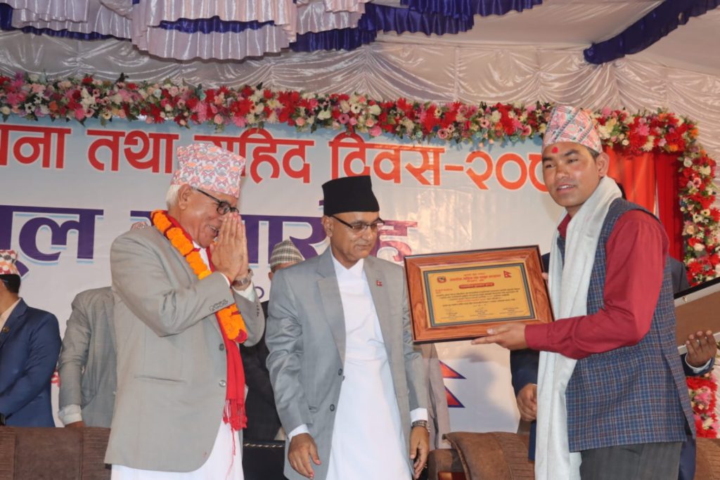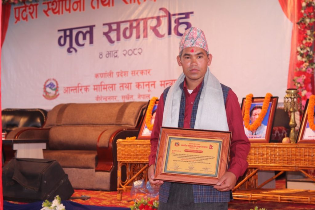 प्रदेश स्थापना तथा सहिद दिवसका अबसरमा पत्रकारिता मार्फत कर्णालीकाे विकास,समृद्वी र नागरिकलाई सुसुचित गराउन महत्ववूर्ण भुमिका निर्वाह गरेकाेमा पत्रकार नेपाली पुरस्कृत भएका हुन ।