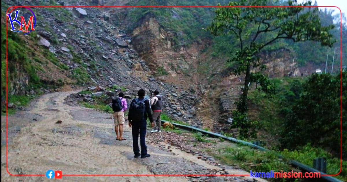 अविरल वर्षापछि आएकाे पहिराेले राजमार्ग अबरद्व भएकाे हाे जिल्ला प्रहरी कार्यालय कालिकाेटले जनाएकाे छ।