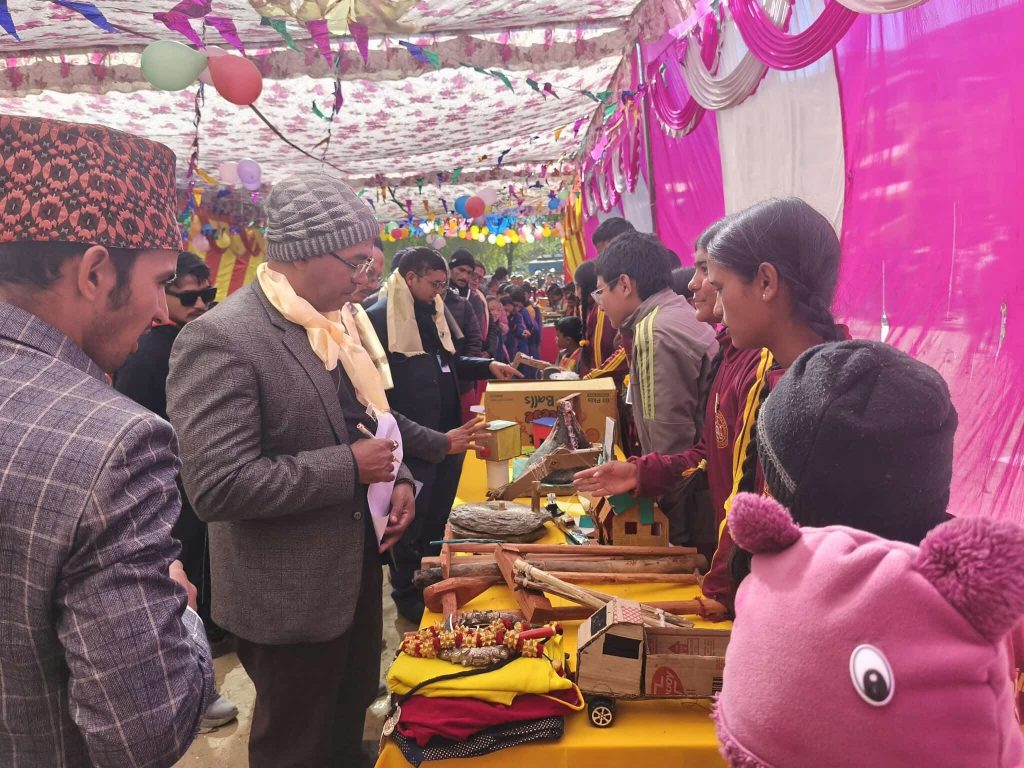 स्थानीय स्तरमा उपलब्ध स्रोत साधनको अधिकतम प्रयोग गरी विद्यालयमा अध्ययनरत बालबालिकाले निर्माण गरेको विभिन्न शैक्षिक सामाग्री प्रर्दशन गरिएको उनको भनाई छ ।