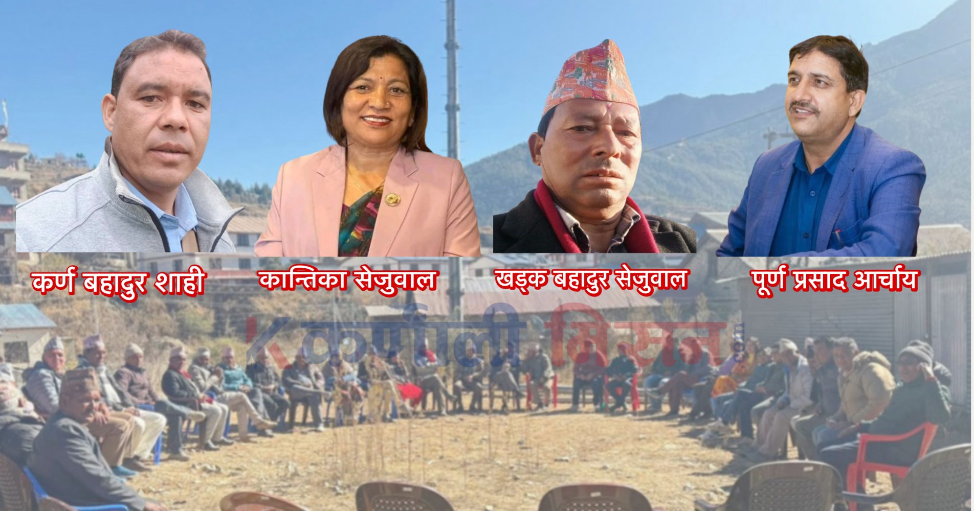 आगामी फागुन २१ गते हुने प्रतिनिधि सभाको निर्वाचनका लागि नेपाली काँग्रेस जुम्लाले चार जना उम्मेदवारको नाम सिफारिस गरी पठाएको छ । जसमा नेपाली काँग्रेसका जुम्ला सभापति कर्ण बहादुर शाही, पूर्वसांसद कान्तिका सेजुवाल, खड्क बहादुर सेजुवाल र पूर्ण प्रसाद आर्चायलाई प्रतिनिधि सभा सदस्य उम्मेदवारका लागि सिफारिस गरिएको छ ।