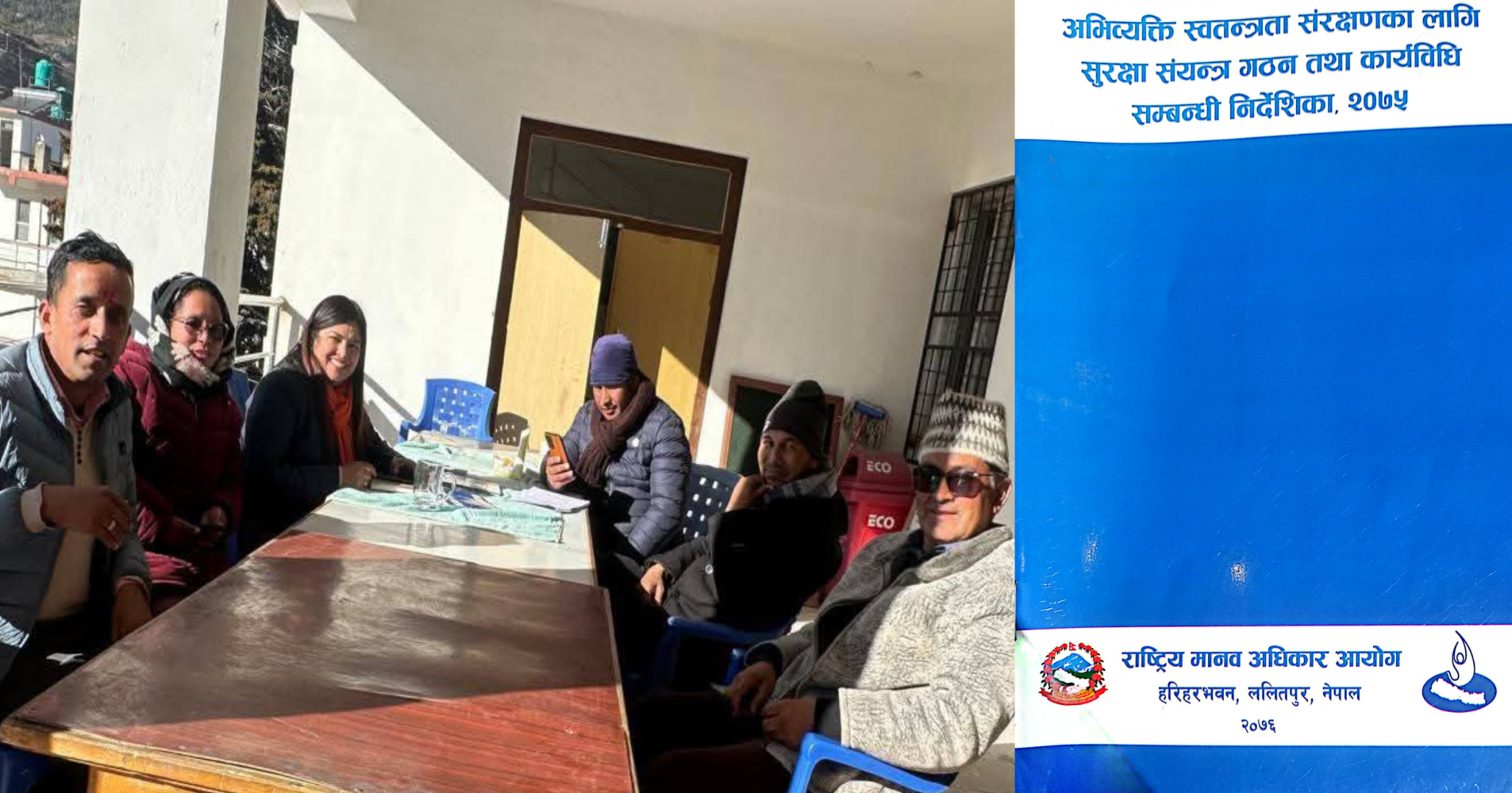 आयोगले शाखा कार्यालय जुम्लाका प्रमुख कल्पना नेपाल आचार्य संयोजक रहने गरी अभिव्यक्ति स्वतन्त्रता संरक्षणका लागि सुरक्षा संयन्त्र गठन तथा कार्यविधि सम्वन्धी निर्देशिका, २०७५ अनुसार ९ सदस्यीय संयन्त्र गठन गरेको हो ।
