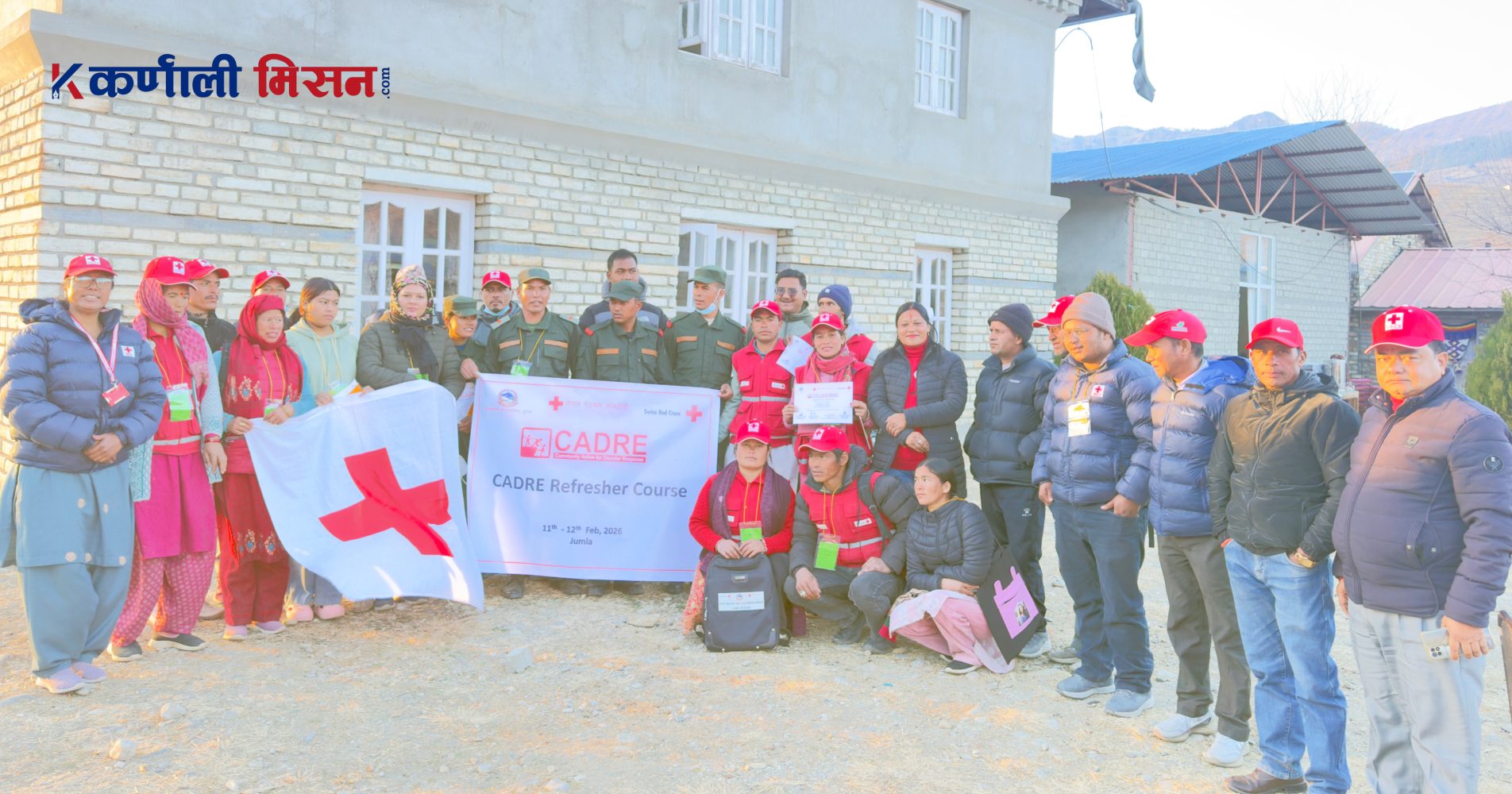 जुम्ला । नेपाल रेडक्रस सोसाईटी शाखा जुम्लाद्वारा चन्दननाथ नगरपालिका यूवालाई विपद् उद्वार सम्बन्धि क्याड्रेको पुर्नताजकी तालिम दिईएको छ । एक वर्षअघि क्याड्रे तालिम लिईसकेका स्वयमसेवक यूवायुवती तथा नगर प्रहरीलाई क्याड्रे पुर्नताजकी तालिम प्रदान गरिएको हो ।