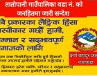 ताताेपानी गाउँपालिका वडा नं १ काे जनहितमा जारी सन्देश