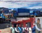 सडक अवरुद्ध भएपछि स्याउ बोकेका गाडी बाटोमै थन्किए