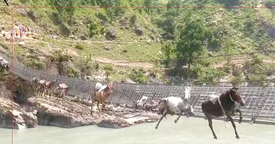 झोलुङ्गे पुल चुँडिदा १५ खच्चड फसे