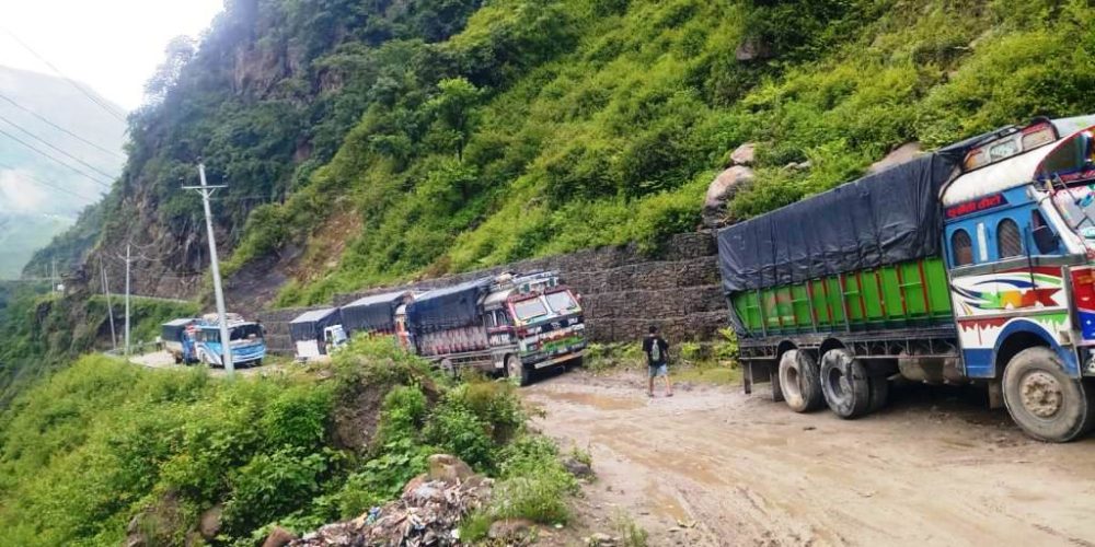 सडक अबरुद्धः १३ करोडको १८४ मे.टन स्याउ बोकेका २३ ट्रक रोकिए